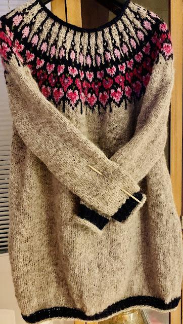 Kuva-albumin kätköistä löysin kuvia tekemistäni kirjoneulesukista.