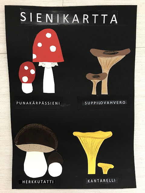 Vuosia sitten suunnittelin sieni- ja marjakartat alakoulun askartelutarpeisiin. Taulut toimivat pohjana erilaisille innovaatioille.